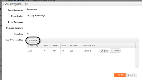 In the Event Thresholds table, click Create.