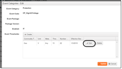 In the Event Thresholds table, click Edit for the threshold you want to edit.