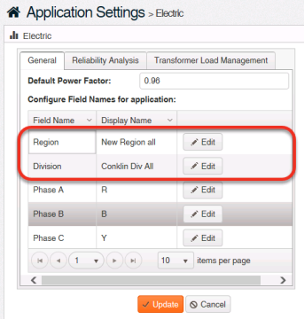 Tip: The text you enter here is the text that will appear in all Electric pages where Region (if you are editing the Region field) or Division (if you are editing the Division field) currently appear.