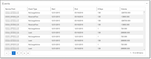 No Usage on Active. An active service point had usage below a specified threshold for a specified number of days. The volume reported for this event is: (total consumption during first day of event) + (total consumption during second day of event)... + (total consumption during last day of event)