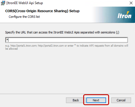 3. ItronEE WebUI Api Website Port. The port that is used by the API service. The default port number is 5001.