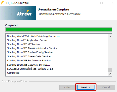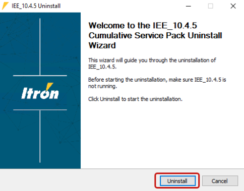In the dialog that appears, select Yes. The IEE 10.4.5 Cumulative Service Pack Uninstall Wizard appears.