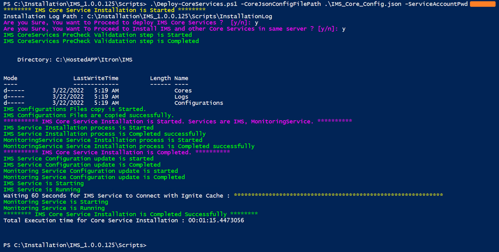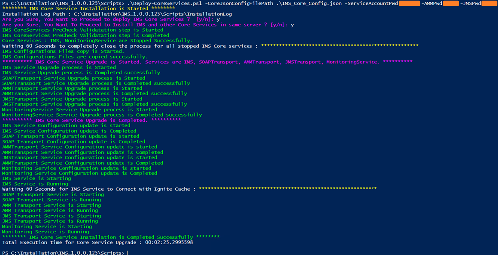.\Deploy-CoreServices.ps1 -CoreJsonConfigFilePath [Core Service json file path] -ServiceAccountPwd [service account password] -AMMPwd [AMM endpoint user password] -JMSPwd [JMS endpoint user password]`