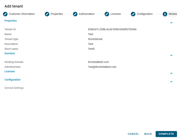 Important! If the entered Customer number is not validated, you can manually enter the Customer name. In this case, the customer is considered a new tenant, and a Tenant type of Itron Internal is automatically selected. Upon completion of the tenant wizard, the customer information is added to the database. Changes to the tenant properties can be made later.