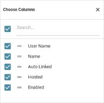 For columns that contain predefined selections only, select or deselect any of the available options, or type all or part of a value in the Search field. Click anywhere outside of the dialog to close it. The column displays only matching results.