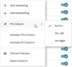 ), and select Pin Column. Then select Pin Left or Pin Right. To clear a column pin, select No Pin.