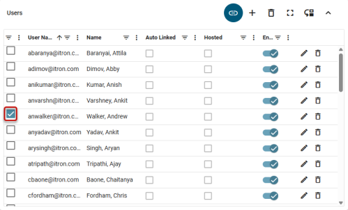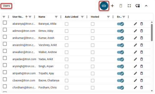 Existing user. Select the checkbox next to the existing user or users to be added to the tenant. After the selections have been made, click the Link button. The new users appear on the Users card.