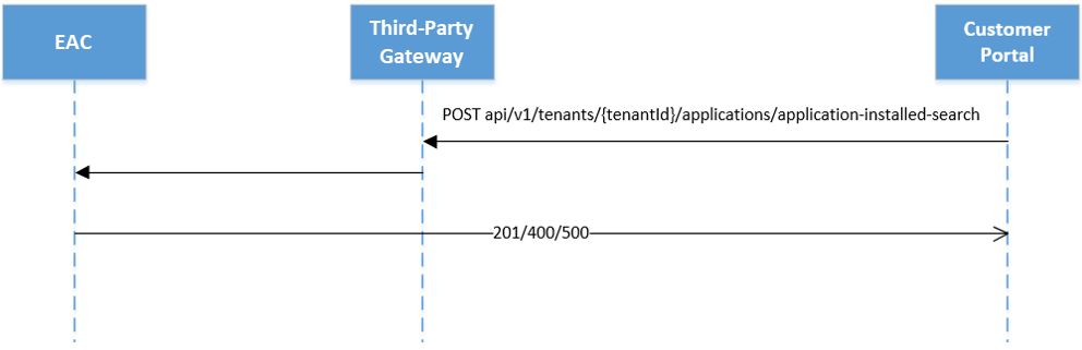 The customer portal makes this REST call to the Third-Party Gateway to export providing information about all installed applications.