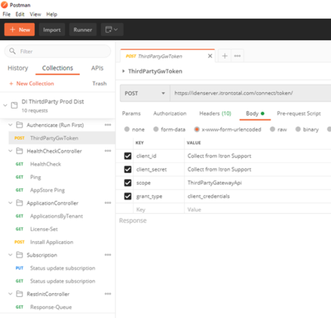 Import the Postman Collection that Itron provided into Postman. The following image shows the imported files.